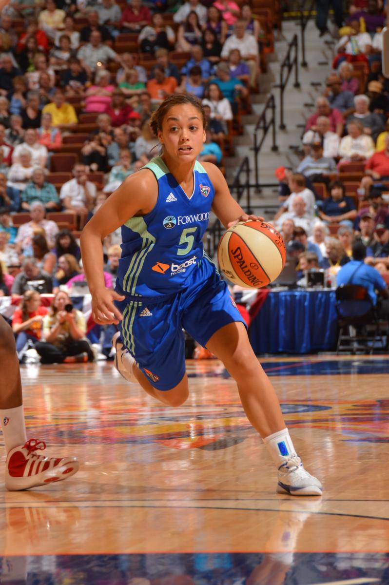 LIGHTNING'S WNBL LYNX: Adelaide's Steph Talbot in full flight for Minnesota.