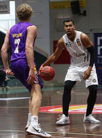 WILSON HALTS HOLT: Kings guard Tom Wilson and Brisbane's Stephen Holt