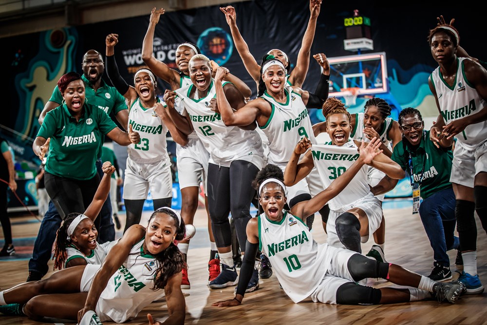 WINNERS! The Nigerian team celebrates its upset. Pic courtesy of FIBA.com