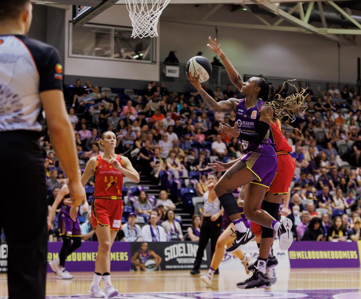 MELBOURNE BOOMERS 85 (Mitchell 23, Murray, Wallace, George 16; George 11 rebs; Mitchell 7 assts) d ADELAIDE LIGHTNING 81 (Talbot 23, Borlase 17, Whittle, Monroe 13; Monroe 11 rebs; Mansfield 7 assts) at The Boom Box, Melbourne Sports Centre. Crowd: 2,856.jpg)