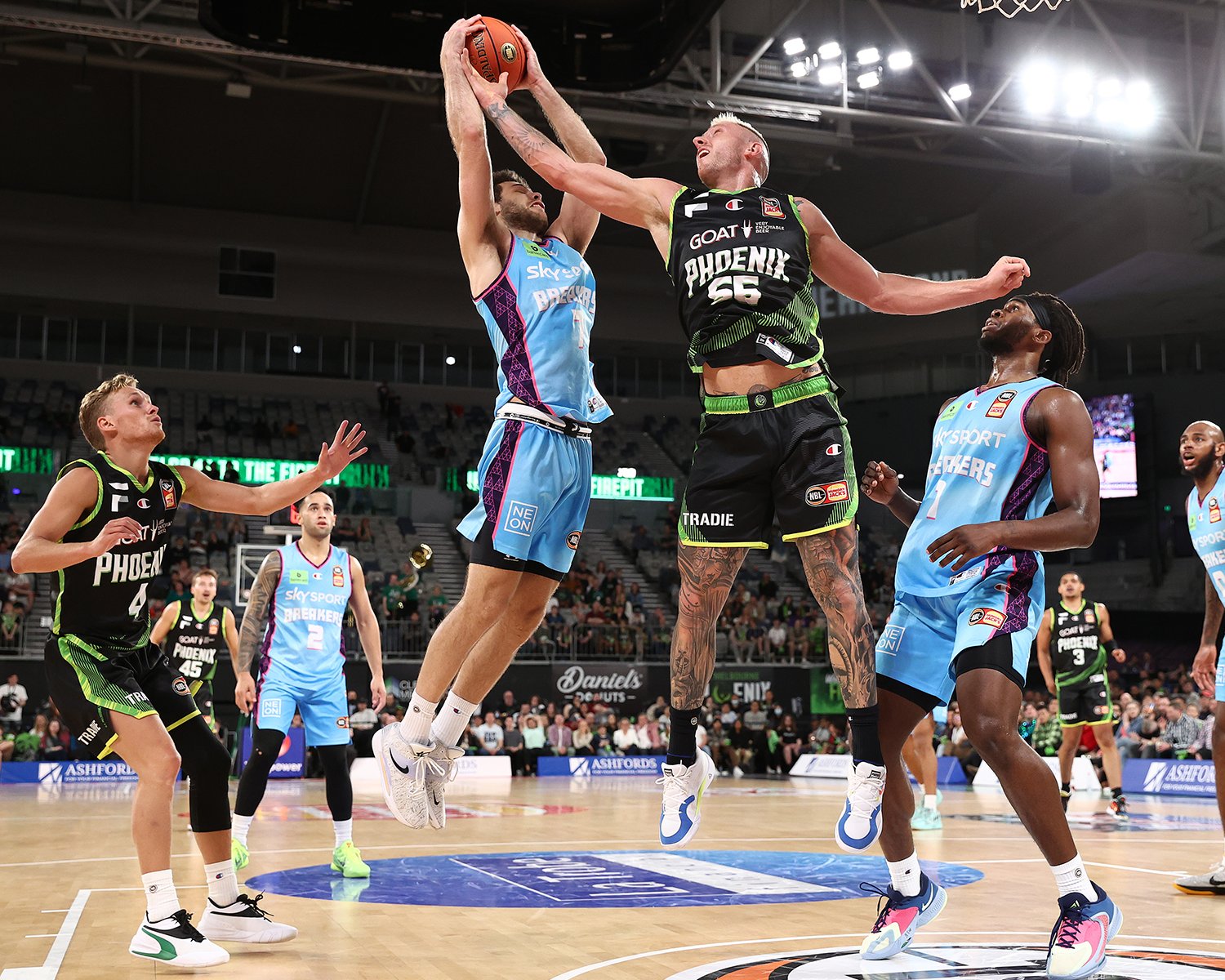 South East Melbourne Phoenix 99 (Adnam 17, Williams 16, Creek 15, Kell Iii 13, Qi 10; Williams 9 rebs; Browne 9 assts) d New Zealand Breakers 77 (Brantley 17, Pardon 16, Le'afa 10; Loe 8 rebs; Le'afa 4 assts) at The Breakwater, Trusts Arena. Crowd: 2,288 BELOW: A happier NZ-SEM clash