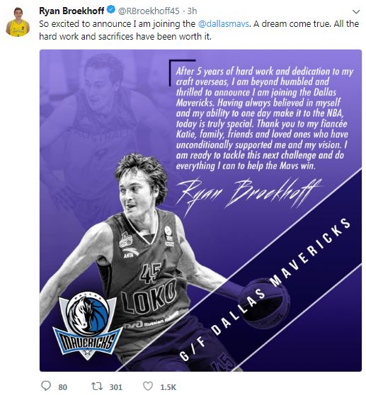 TweetMANILA exempted, it hasn’t been a bad week for Australian basketball with first Dante Exum signing a three-year $33million deal at Utah Jazz, now Ryan Broekhoff securing a two-year deal at Dallas Mavericks.