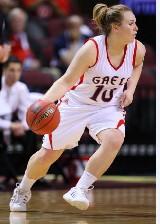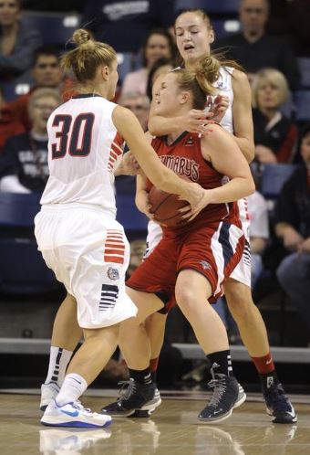ONE WAY TO STOP HER: Kate Gaze at St Mary's facing a serious double-team!