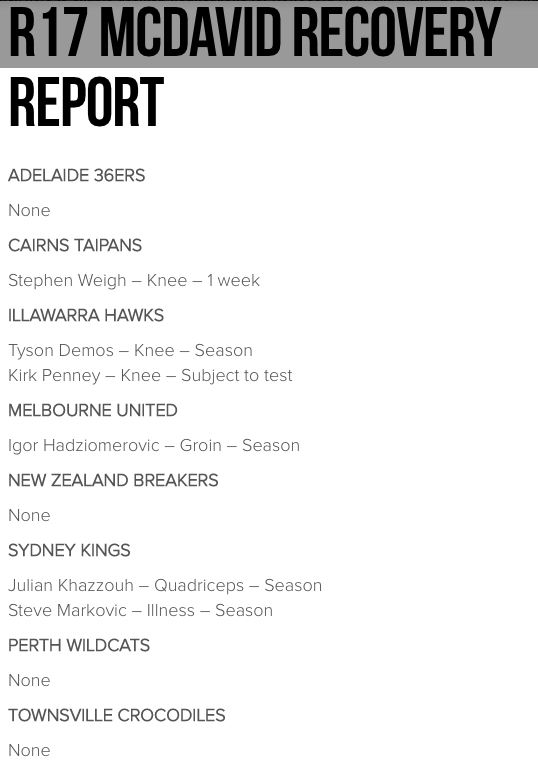 That's the injury latest, although check out the NBL's report from just a day or two ago...