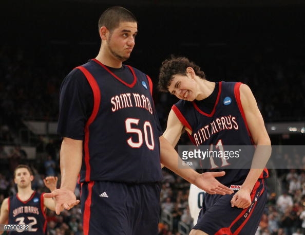 OLD PALS: Omar Samhan and Clint Steindl in their St Mary's days. Pic courtesy GETTY.