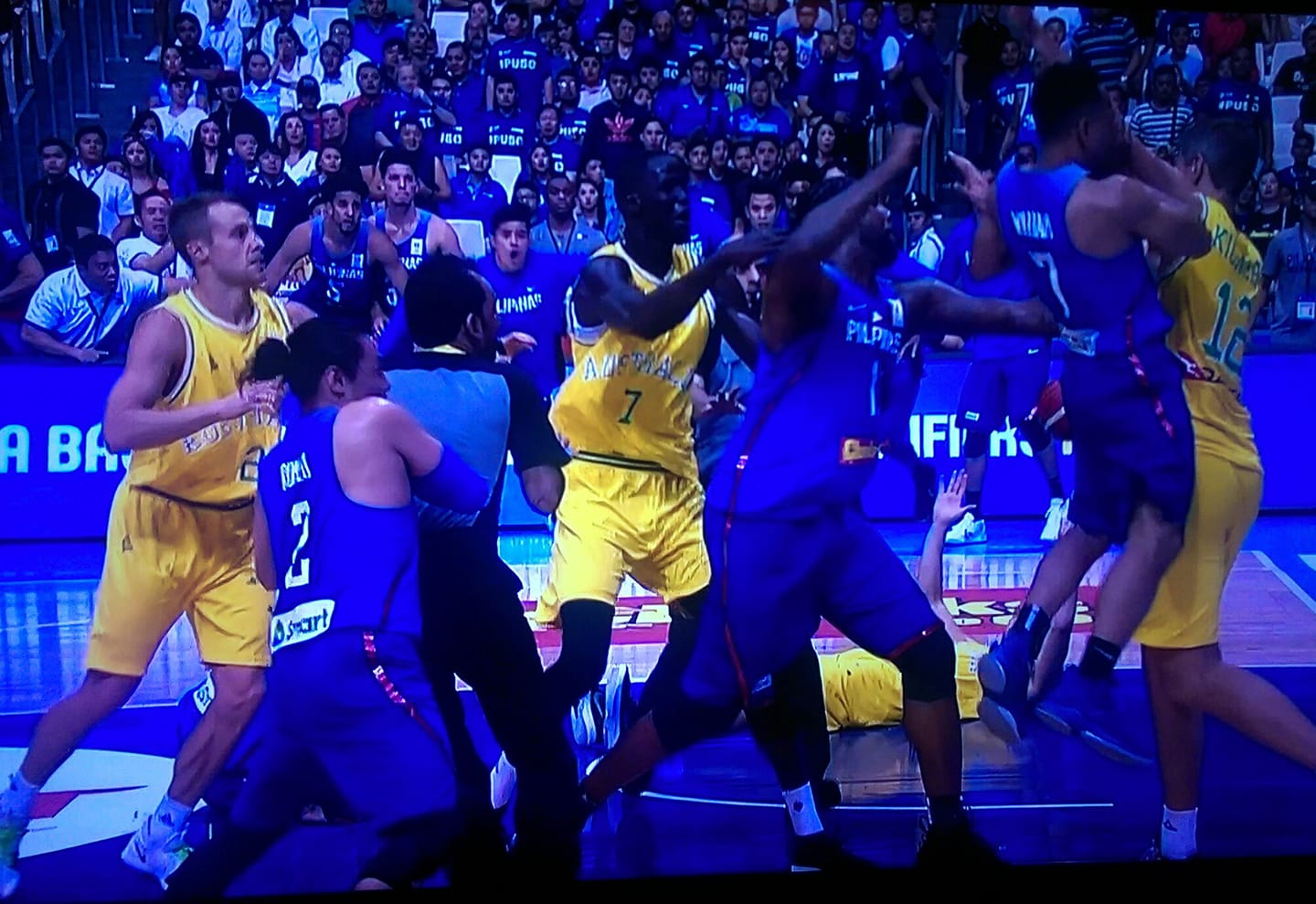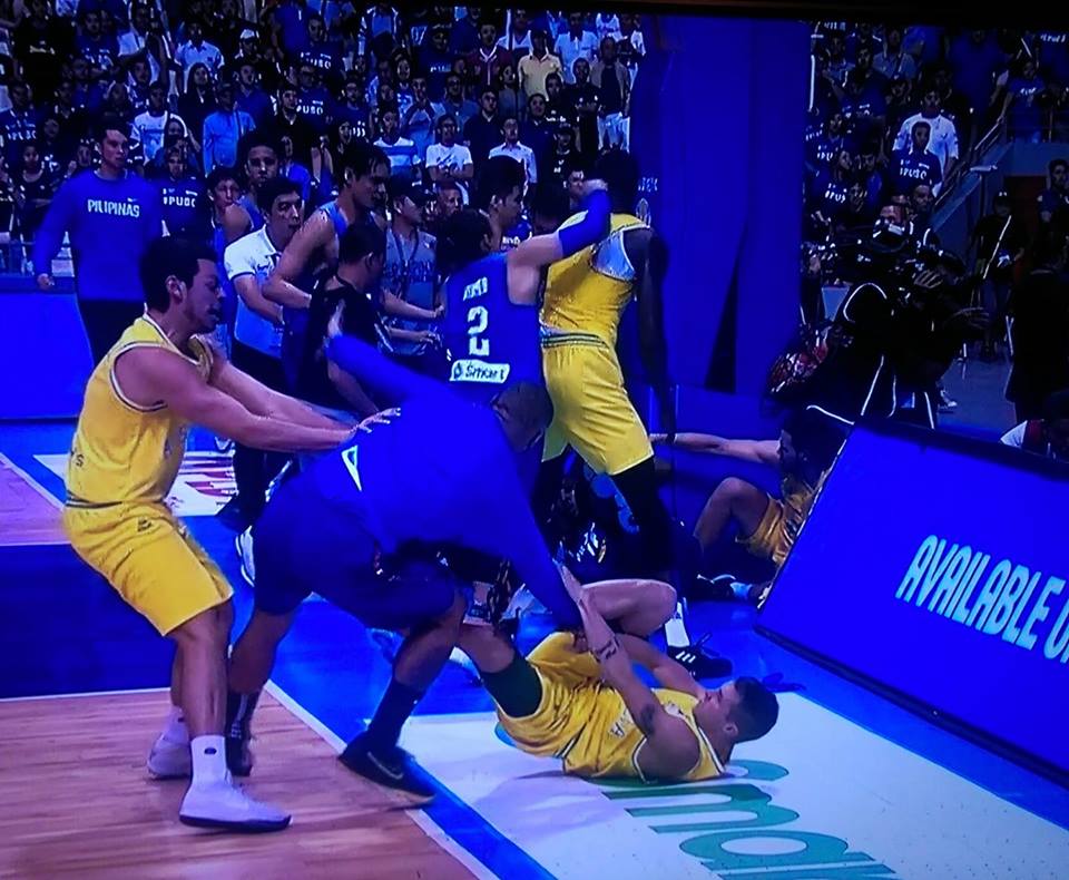 Immediately, the Filipinos clear the bench and attack Kickert, Goulding and Nathan Sobey, Thon Maker endeavouring to come to their rescue and Jason Cadee trying to restrain the madness and restore some measure of normalcy.