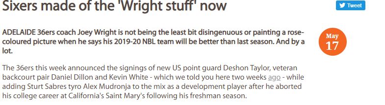 Sixers coach Joey Wright is a huge fan but it is kind of old news, given we reported it here, and not sure even that was the first story about the Sturt Sabres guard.
