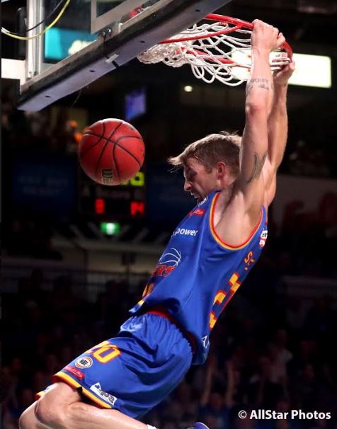 SOARING SOBES: Nathan Sobey throws one down for Adelaide during the NBL season.