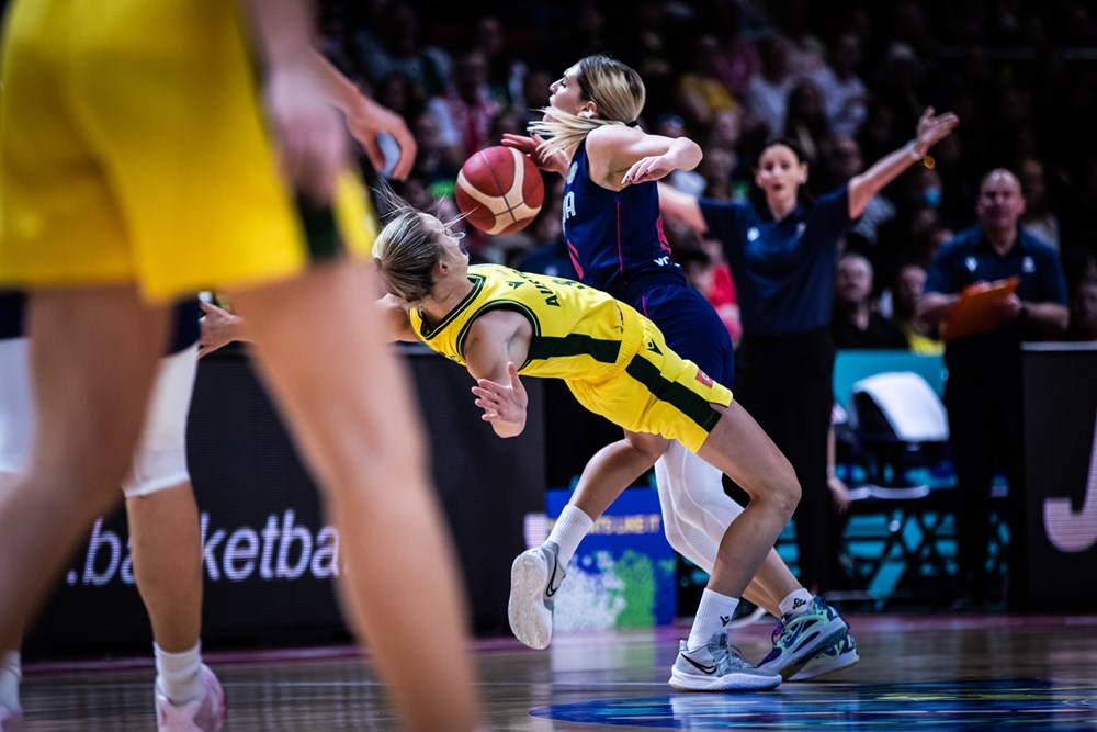 Starting energetic veteran centre Marianna Tolo for Ezi Magbegor, a Steph Talbot 3-pointer opened the scoring in a match where Australia would never be headed.