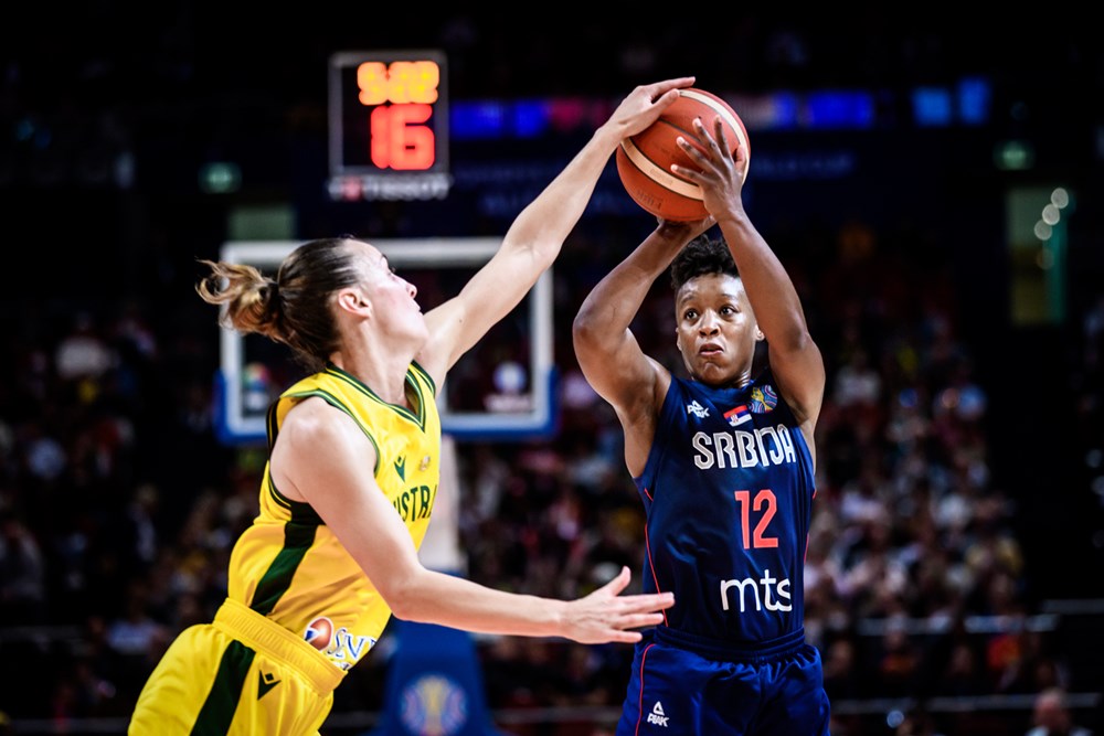 Allen blocked two big shots and Talbot smacked away three as Serbia increasingly was reduced to reliance on Yvonne Anderson. She had 14 of Serbia's 28 points at halftime, Australia ahead by eight but obviously wearing away the resistance.
