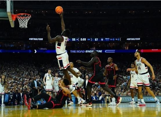 The tournament MOP (Most Outstanding Player) Adama Sanogo (17) and Jordan Hawkins (16) also had their way offensively against San Diego State, UConn frustrating the Aztecs around the rim for much of the night.