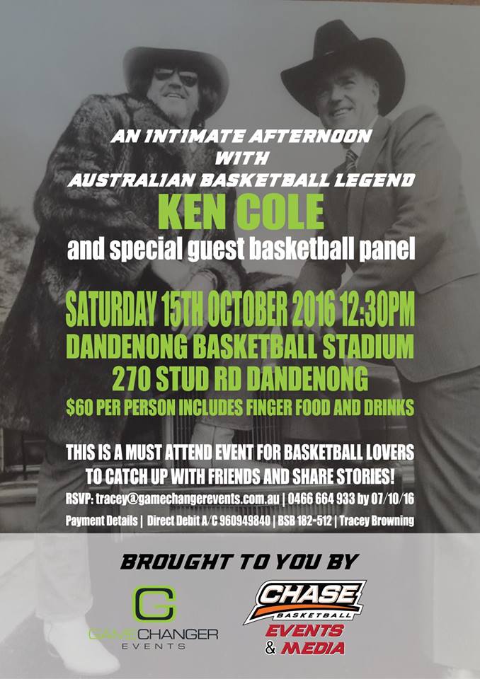 FIBA Hall of Famer Lindsay Gaze and BA-NBL Hall of Famer Cal Bruton (left) will be part of the panel at "An Intimate Afternoon with Ken Cole" on the great man's birthday, October 15, at Dandenong Stadium in Melbourne.